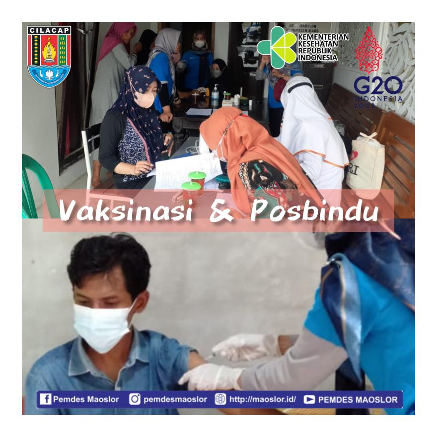 Pemerintah Desa Maoslor bekerjasama dengan Pihak Puskesmas Maos melaksanakan kegiatan Vaksinasi Dosis 1,2 dan 3 dan Posbindu mengecek Kesehatan.